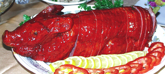 PORK SAUSAGE IN FORM OF A SUCKLING PIG IN RUSSIA