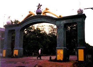 | A note from Elaine Morrison: "The picture of the church in Worms is of the Reformed church. That information comes from a relative who lived in Worms until her family was sent to Siberia during WW II. When we were in Worms we thought that the big old church was Lutheran and I am aware that several people have misidentified their pictures.... The Lutheran church ....apparently was on the same street, not far from the Reformed..." The picture below was taken by Elaine who consented to use it for this web site. She tells me this town gate is not the original gate but replaces one that once did stand here. Does anyone out there have a picture of the orginal gate? |